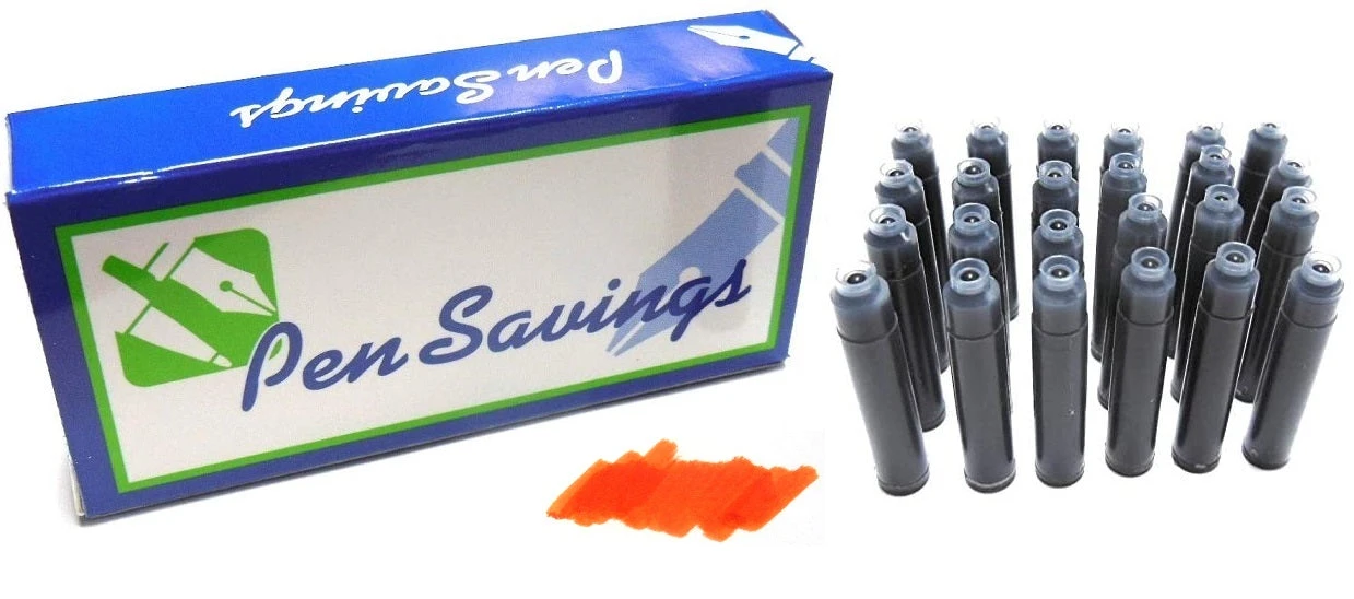 24 Standard International Short Fountain Pen Ink Cartridges, Sunset Orange