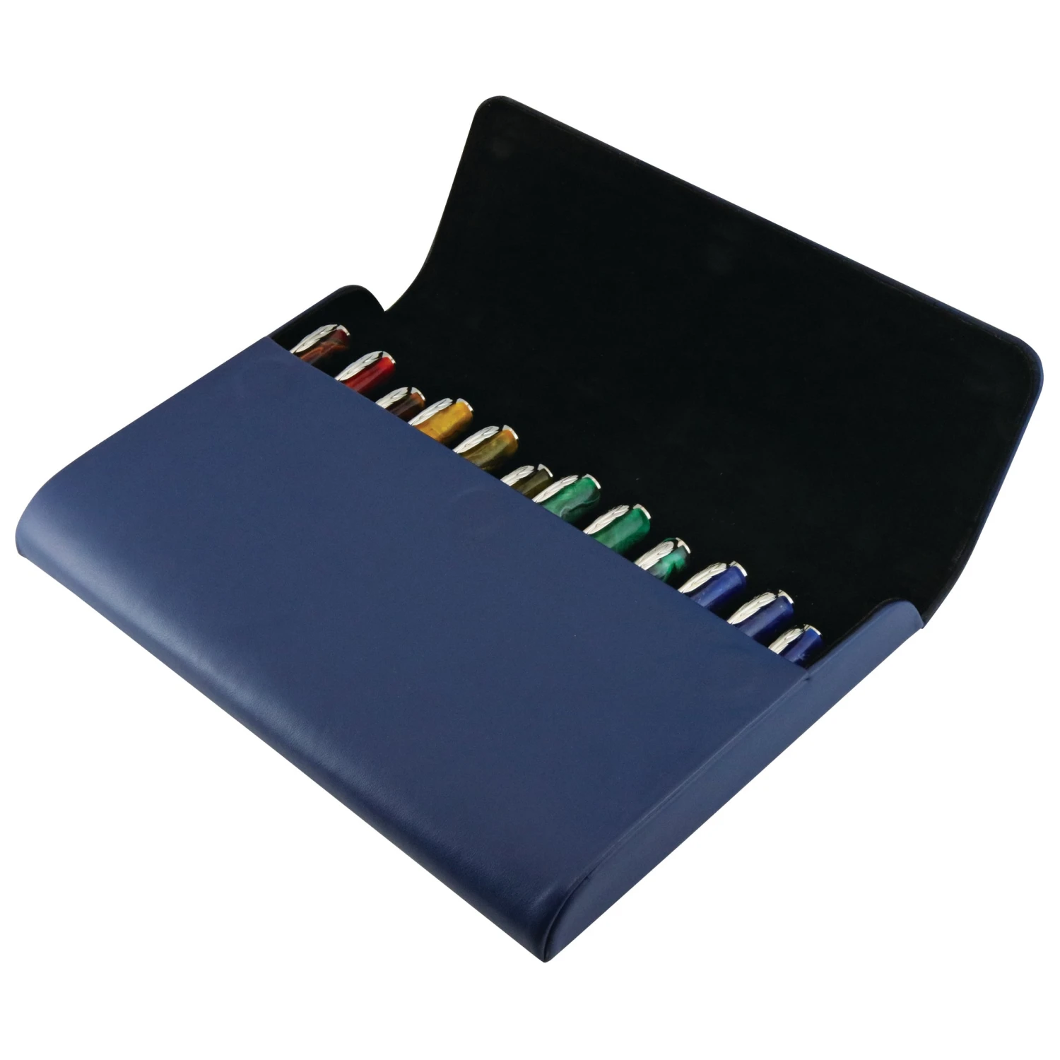 Pineider leather pen cases are crafted from the finest Italian leathers. These cases will hold up to 12 pens and have individual slots that protect the pens from each other.